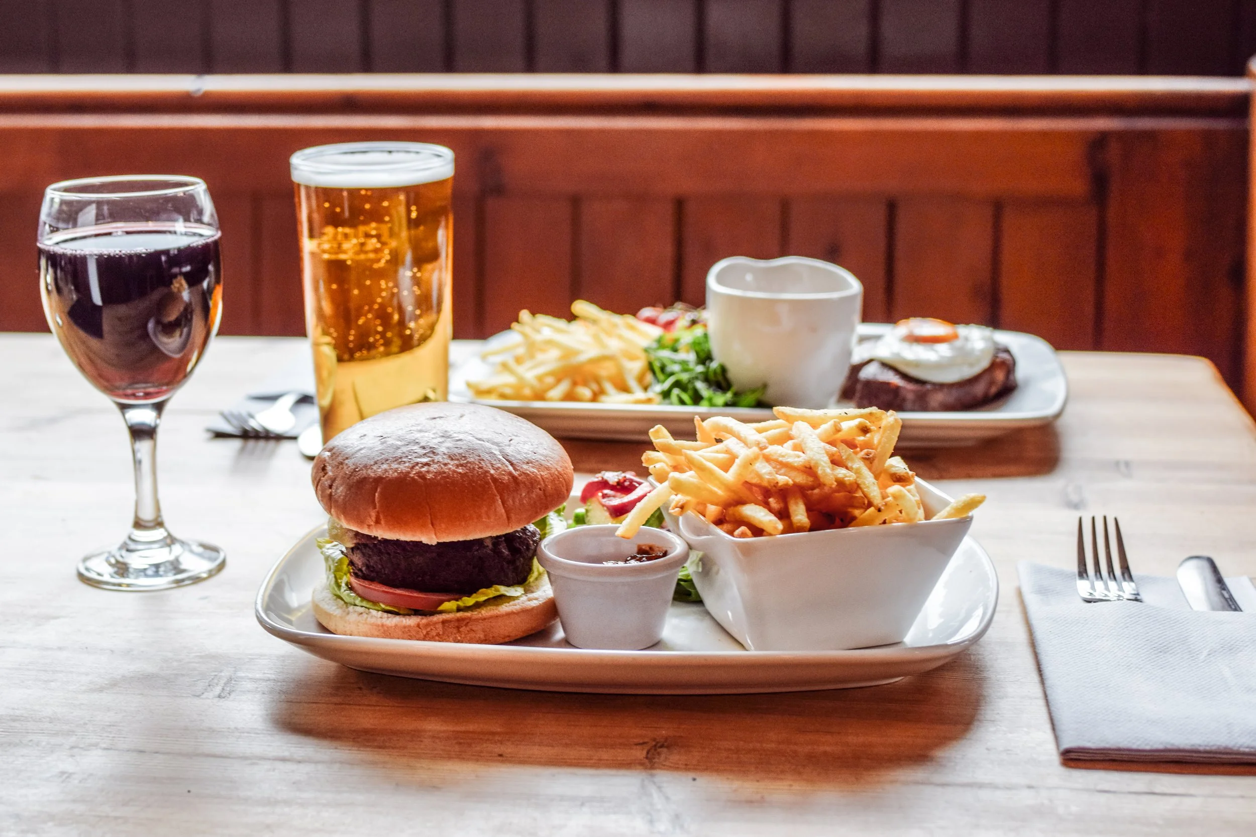 We serve an extensive range of beers, ciders, wines, spirits, a large choice of alcohol-free drinks and an impressive selection of gin and whisky.